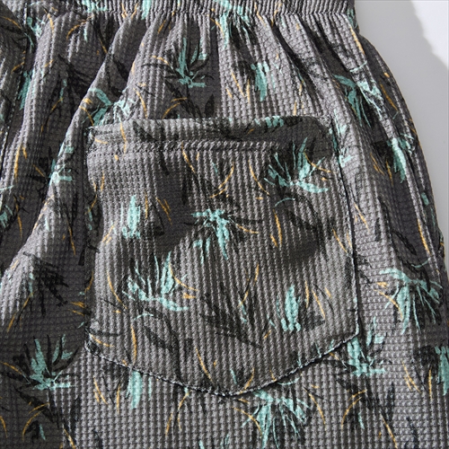 自宅でのリラックスウエアとしても活躍する総柄ワッフルパンツ